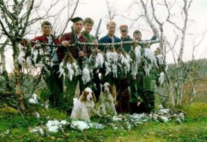 Her er alle sammen med en hel "skokk" med fugl. Hans, John Arild, Lars, Eirik, Tore og Erling.