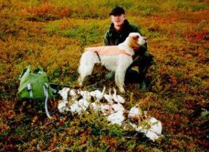 Sofus skal reise et kull. Det viste seg at dette var et stort kull som sprang langs bakken, og var allerede langt på vei når dette bildete ble tatt. Hans følger på.